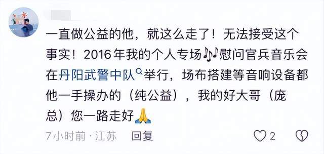许多好友得知庞佳惠吃亏的音讯后,也王人难以袭取,好友们也纷纷发文吊唁,送别庞佳惠,也为他的离去感到恻然与不舍。