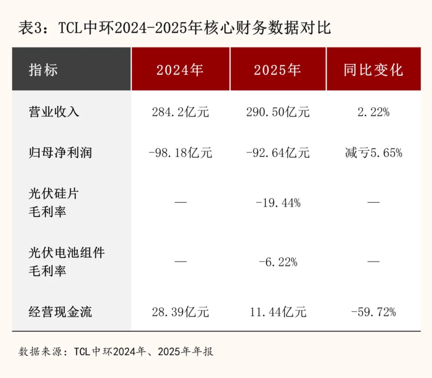 3月24日,TCL中环发布2025年年报,事迹期内公司商业收入290.50亿元,同比增长2.22%;归母净利润-92.64亿元,虽较2024年的-98.18亿元略有减亏,但亏蚀额依然束手待毙。